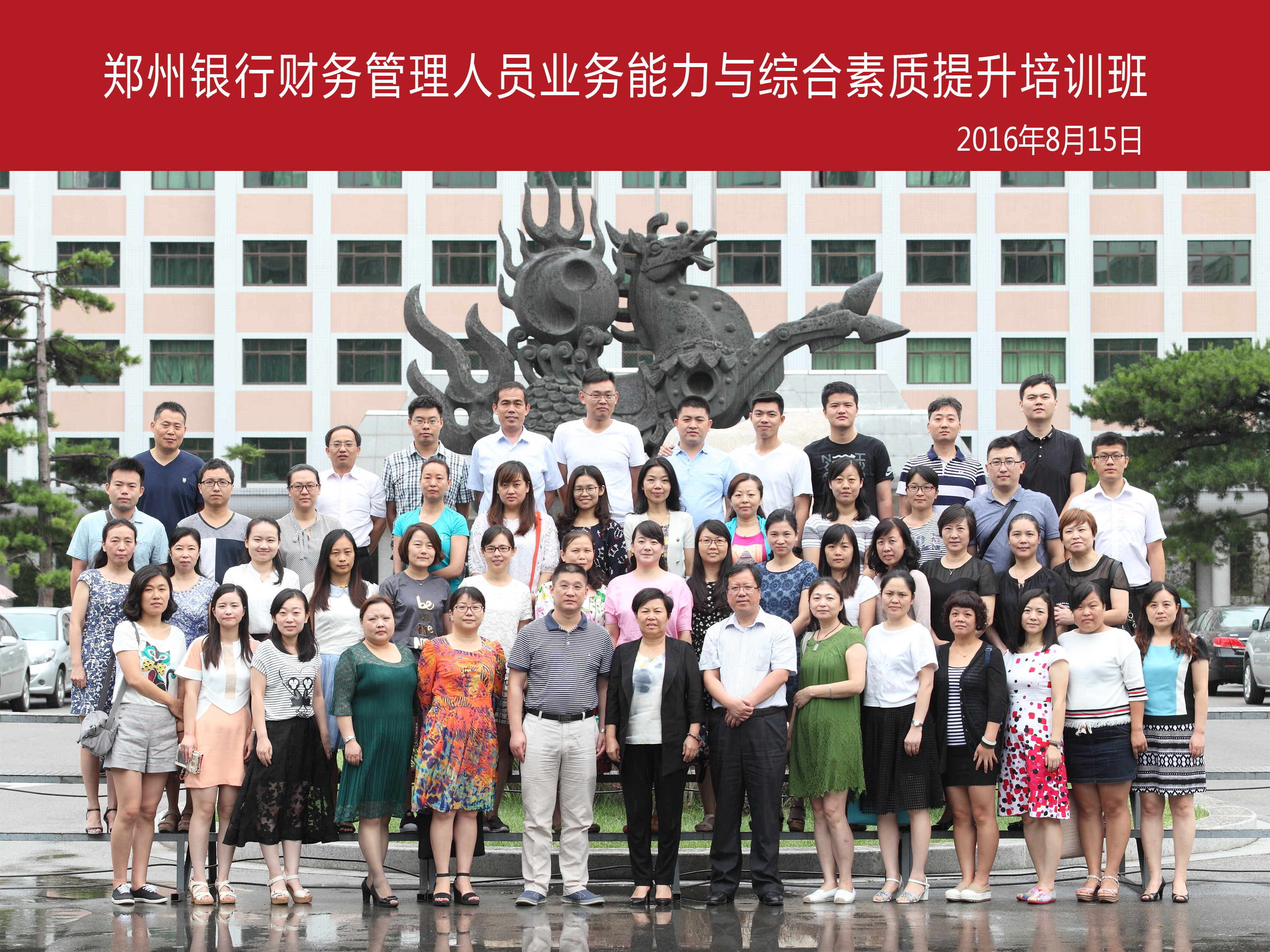 2016年8月15日至19日,由郑州银行主办、太阳成集团tyc41183培训学院承办的“郑州银行财务管理人员业务能力与综合素质提升培训班”在我校学术会堂706成功举办。